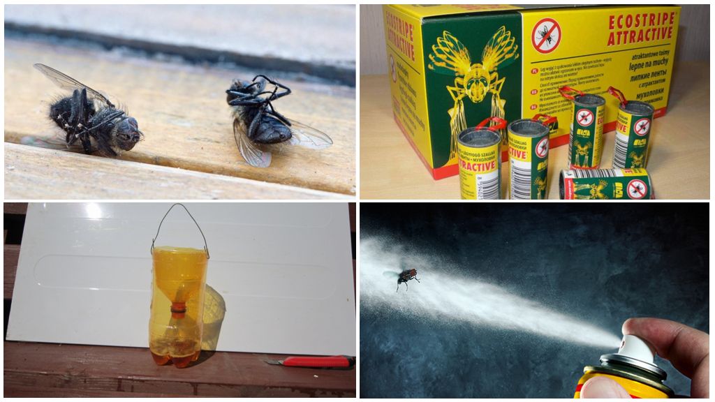 - Провести дезінсекцію. Для цькування використовують препарати на основі інсектицидів широкого спектра дії, у вигляді спрею, аерозолю, концентрованої емульсії. Препарати знищують комах протягом 60 хвилин, захищають від повторного зараження від 14 до 60 днів. Можна застосовувати побутові інсектициди начебто Раптора або Агиты, але в цьому випадку знищення мух займе більше часу.
