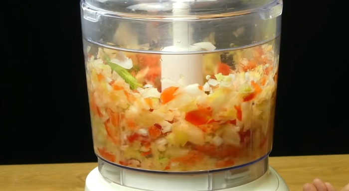 1. Всі овочі, крім часникових зубчиків, пропускаємо через блендер або м’ясорубку і з’єднуємо в толстодонной посудині.