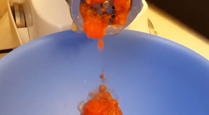 1. Перший етап складається з перемивання томатів, вирізати плодоніжки і зіпсованих місць (якщо такі є) і перемелювання в пюреобразную масу.