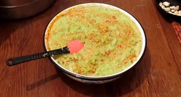 Аджика з зелених помідорів з часником і перцем на зиму з варінням