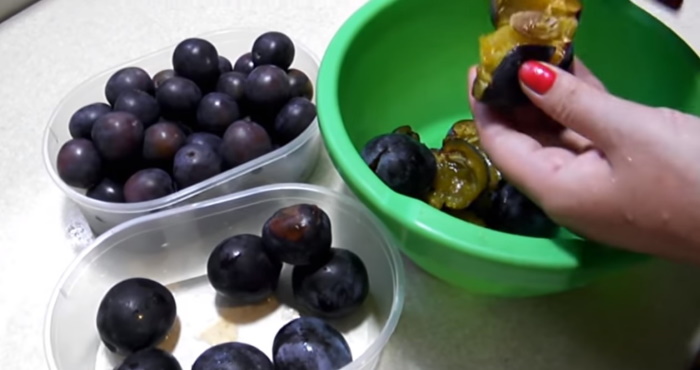 1. Плоди слив надрізаємо і виймаємо з них кісточки.