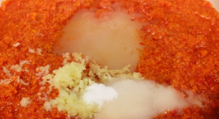 Сіль, часник, чилі і цукор регулюється за смаком.