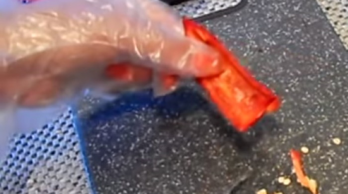 Працювати з чилі краще в латексних рукавичках, інакше пекуче речовина проникає в шкіру рук, і довгий час буде заподіювати незручність.