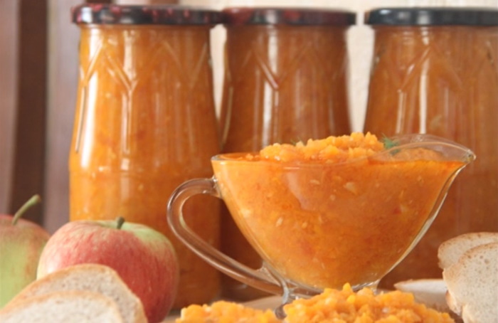 Смачна аджика з яблуками, морквою і помідорами
