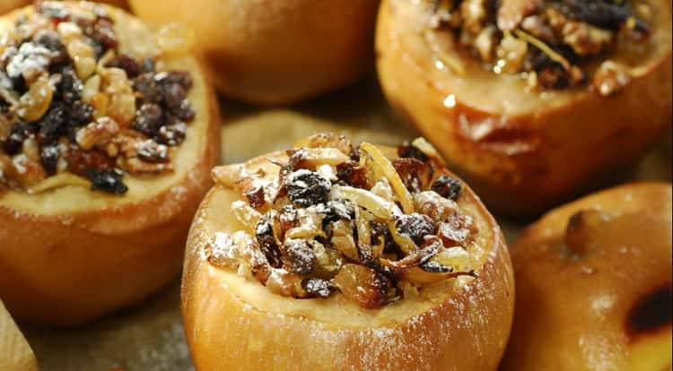 Після цього слід дістати фрукти з духовки і «нафарширувати» їх сумішшю з: козячого сиру потертого на терці, дрібно порізаної петрушки, цукру, подрібненого часнику, кленового сиропу і паприки. Потім такі заготовки потрібно поставити назад в духовку ще на 20 хвилин. Приємного апетиту!