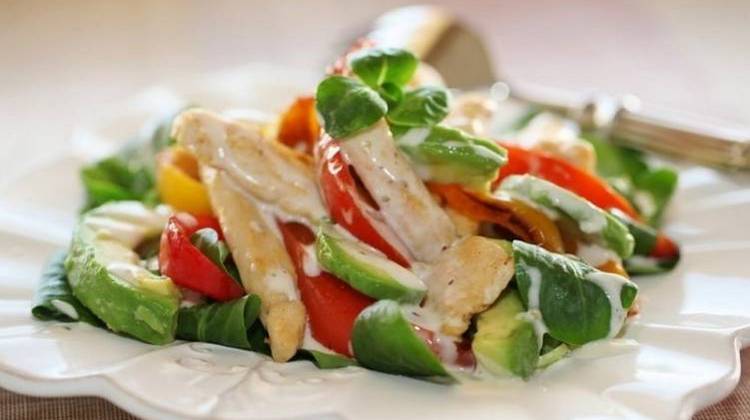 Салат з куркою і авокадо (калорійність: 120 ккал на 100 г)
