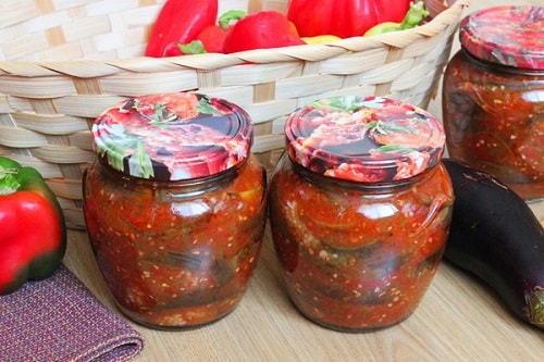 Найпростіший варіант заготовки на зиму з баклажанів з класичним набором овочів для аджики.