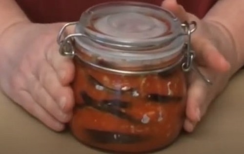 - Після герметично закупорьте під ключ. Зберігайте закуску в холодному приміщенні.