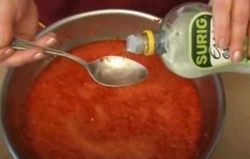 Влийте в кипляче аджику відведені кількість оцту.