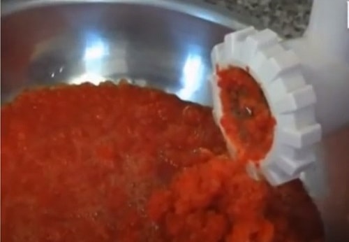 Почистіть обидва види перців від насіння. Подрібніть м'якоть за допомогою м'ясорубки.