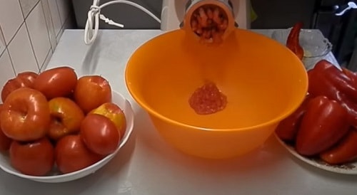 - Підготуйте до переробки інші овочі. Подрібніть їх в м'ясорубці або попрацювавши блендером. Часник пробивайте окремо, він закладається в аджику пізніше інших овочів.