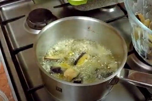 Смажте на сильному вогні, приблизно 5-7 хвилин, в залежності від величини заготовок. Потім перекладіть на паперову серветку, щоб зайвий жир вбрався.