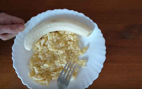 Розімніть виделкою обидва банана.