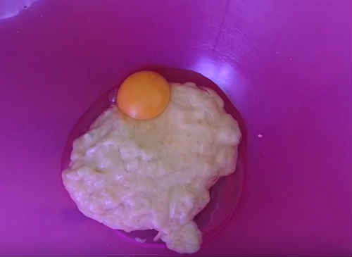 Вбийте в миску з пюре яйце, налити рослинне масло. Знову попрацюйте виделкою, разболтав масу до однорідного стану.