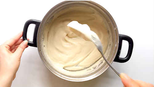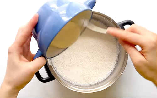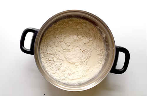 Налийте в каструльку молоко, засипте борошно, старанно перемішайте до зникнення грудок.