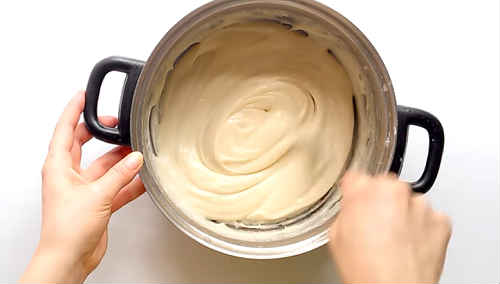 Поставте каструльку на конфорку. На помірному вогні, постійно помішуючи, доведіть суміш до загустіння. По часу у вас піде приблизно 5 хвилин.