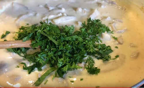 Засипте рубану зелень, дайте прокипіти з хвилинку-дві. Вимкніть і подавайте з гарніром.