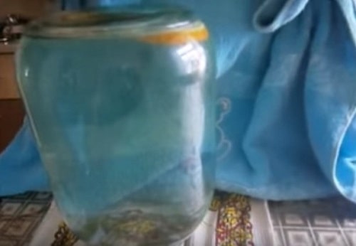 - Закрутіть під залізну кришку, переверніть і остудіть в такому стані, не забувши тепло вкрити балони. Ранок перевірте якість загортання, потім сховайте заготовку на зимове зберігання.