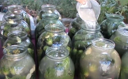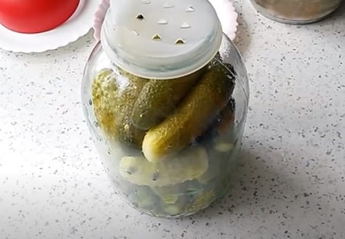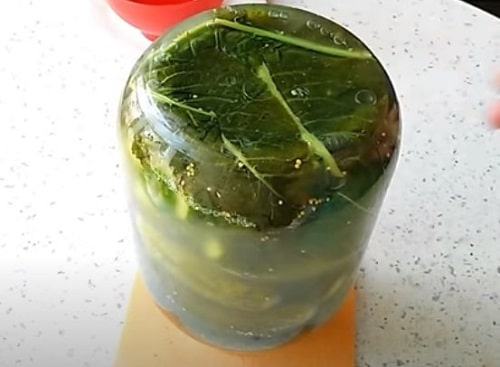 - Злийте всю воду. Зробіть новий тузлук з великої ложки солі на банку. Залийте, закрити капроновими кришками. Потім заберіть банки на зимове зберігання в приміщення з низькою температурою.