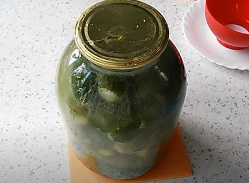 Залиште до наступного дня повільно остигати. Ранок перевірте герметичність закупорки. Без побоювання зберігайте в квартирі, комори, на лоджії.
