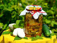 - Загорніть заготівлю залізною кришкою або закрутіть гвинтовий, поставте догори дном. Укутайте банки, дочекайтеся остигання. Обов’язково перевірте герметичність закупорки. Зберігати закатку можна прямо в квартирі, особливих умов консервація не вимагає.