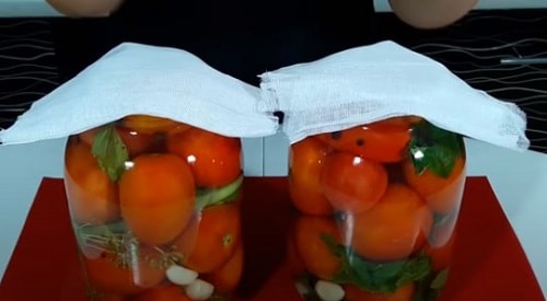 - Залийте охолоджений маринад в банки. Вкладіть марлю, складену в декілька шарів.