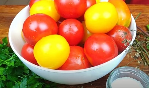 Підготуйте томати до засолюванні – приберіть зіпсовані, потім добре промийте. Місце у плодоніжки можна не обрізати.
