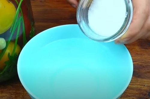 - Розпустіть в холодній воді сіль, гарненько розмішайте.