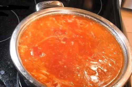 - Посоліть блюдо, засипте цукор. Закип’ятіть борщ, після вимкніть і дайте настоятися.