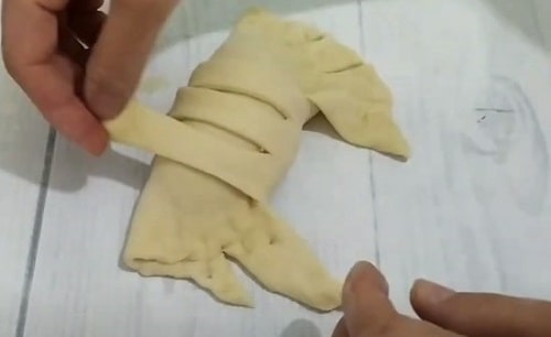 А тепер злегка поверніть булочку на бік, щоб місце закріплення пелюсток вийшло знизу. Тоді під час випікання кінчики не піднімуться вгору і не зіпсують зовнішній вигляд випічки. Трохи закруглюватимете краю булочки, як у круасанів.