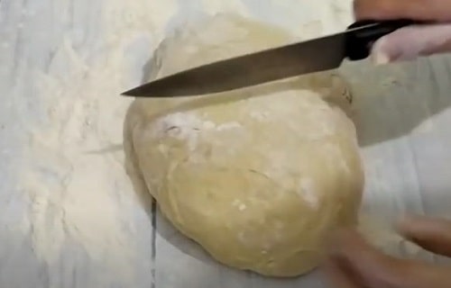 Поділіть куля на 8 рівних частин. Кожен шматочок розкачайте в тонкий корж.