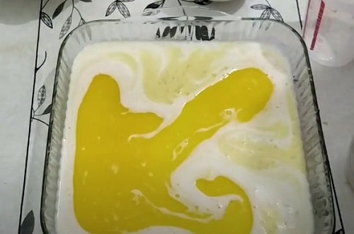 Трохи зігрійте молоко і воду, влийте в суміш.