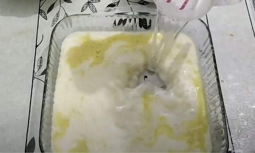 Залийте 100 холодного молока, продовжуйте замішувати.