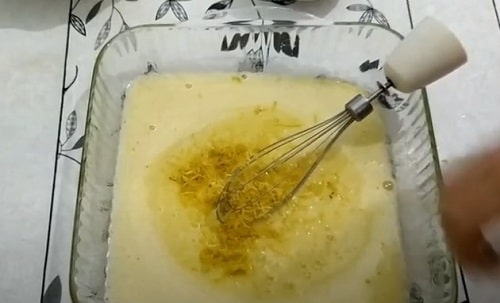 Додайте ванільний цукор. Натріть з лимона цедру, відправте слідом. Замість лимона допустимо використовувати апельсин.