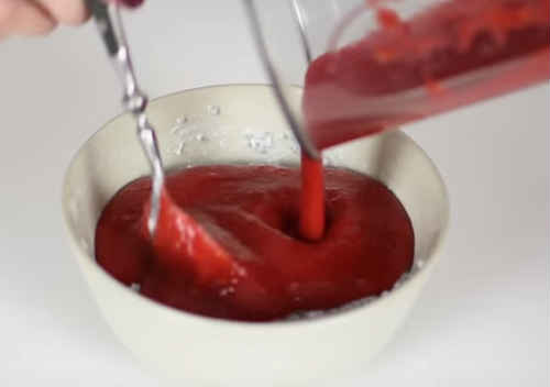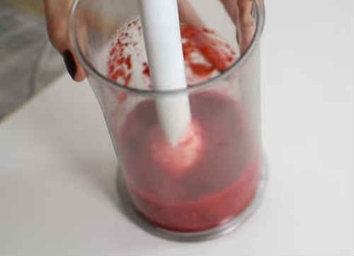 Окремо подрібніть блендером полуницю. Перелийте до молока. Гарненько перемішайте вміст.