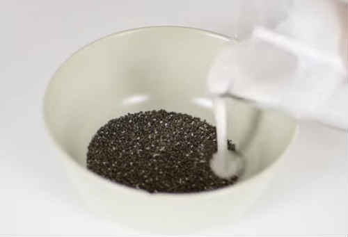 Увага! Насіння чіа наділені желюючою властивістю, в молоці вони розбухають і перетворюють його в пудинг. Але для цього вони повинні постояти хоча б 2 години, але краще довше, до 6 годин.