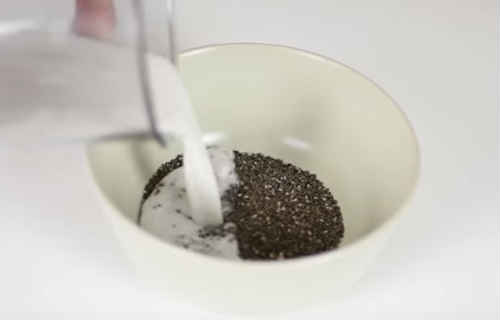 Засипте в мисочку насіння, залийте молоком, сумлінно розмішайте.