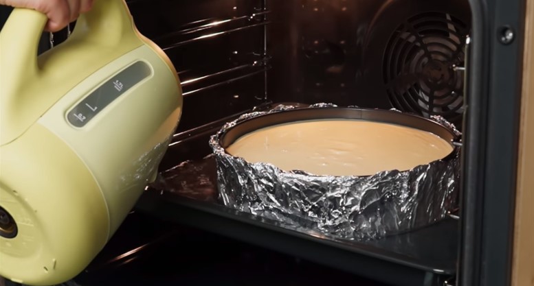 Щоб на поверхні пирога не утворилися тріщини, його треба випікати при низьких температурах, поступово зменшуючи від 180-170 до 150. Простіше – готувати його на водяній бані. В цьому випадку навіть в простій духовці все вийде ідеально. Охолоджувати теж треба поступово: спочатку в прочиненими печі, потім на столі і тільки після цього в холодильнику.