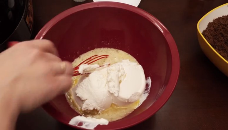 9. Акуратні рухами знизу вгору вмішати вершки в сирну масу.