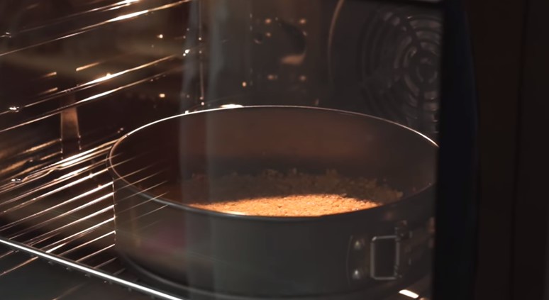 1. Печиво змолоти на борошно, додати розтоплене вершкове масло, перемішати. Отриману масу викласти в роз’ємне блюдо для випічки, сформувавши бортики.