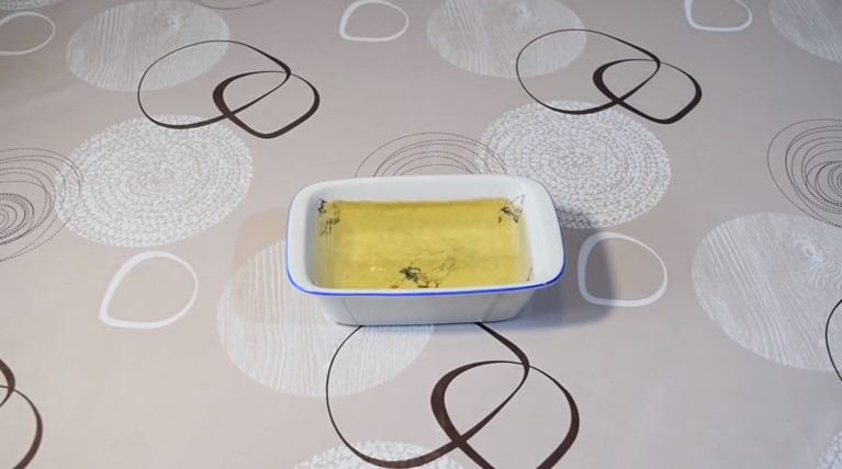 8. Форму поставити в деко з бортиками, влити в нього окріп (1,5 л достатньо). Всю цю конструкцію помістити в духовку на ¾ години при температурі 180 градусів. Потім знизити температуру до 160 градусів і залишити бенкетів в печі ще на півгодини.