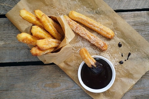 Смажений у фритюрі чуррос – солодкий десерт з заварного тіста. Якщо ви побували в Іспанії, і не спробували чуррос, у мене виникає питання: «А ви точно там були?». Здобні трубочки, солодкі на смак, їдять повсюдно, від Мадрида до самої глухого села. По суті, десерт є аналогом відомим нам пампушків, смаженою у великій кількості олії. Але якщо ви ще не куштували десерт, а дуже хочеться, зовсім необов’язково їхати в іспанські краю. В домашніх умовах солодкість вийде нітрохи не гірше.