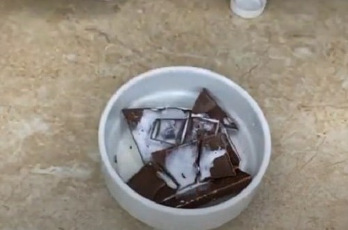 Паралельно займіться шоколадним соусом. Поломайте плитку шоколаду, влийте вершки і молоко. Поставте на водяну баню або поставте миску в мікрохвильовку, щоб вміст розтопилося.