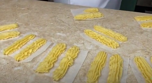 - Видавіть на пекарській папір заготовки довжиною до 15 сантиметрів.