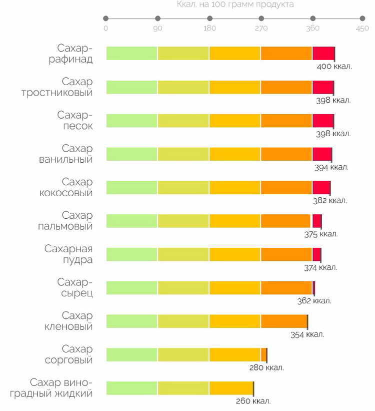 Таблиця калорій в залежності від виду цукру