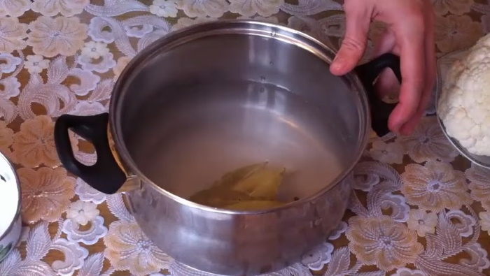 4. Акуратно викладемо суцвіття в киплячий розсіл, дочекаємося повторного кипіння, убавим газ і відваримо овочі протягом 5 хвилин. Потім відкинемо їх на сито, дамо стекти рідини і повністю охладим заготовку.