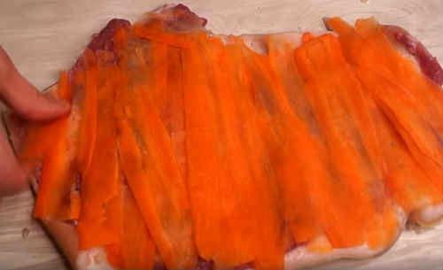 Розкладіть зверху нашатковану довгими слайсами морквину.