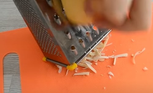 - Настрогайте брусочками свіжий огірок (або попрацюйте терткою для корейської моркви).