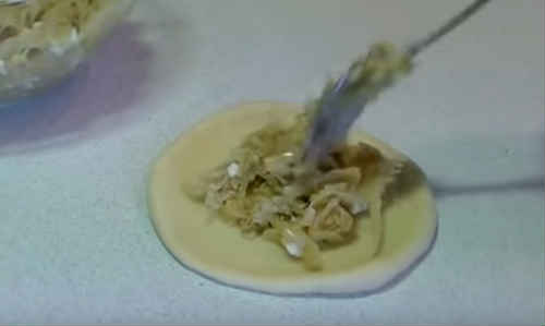 Готове тісто розкачайте і наробіть пиріжків. У мене з капустою, але підійде будь-яка начинка.