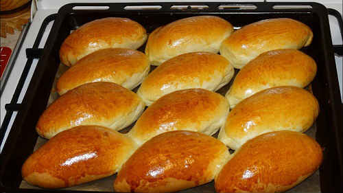 Дивіться, наскільки пишні спеклися пиріжки в духовці. Можна дивитися довго, та терпіння не вистачить, пора пробувати.